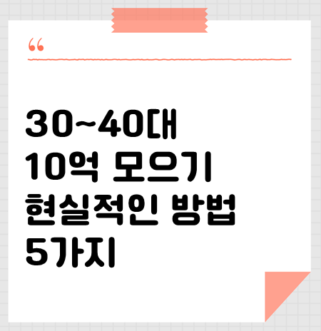 30~40대 10억 만들기: 평범한 직장인도 가능한 현실적인 전략